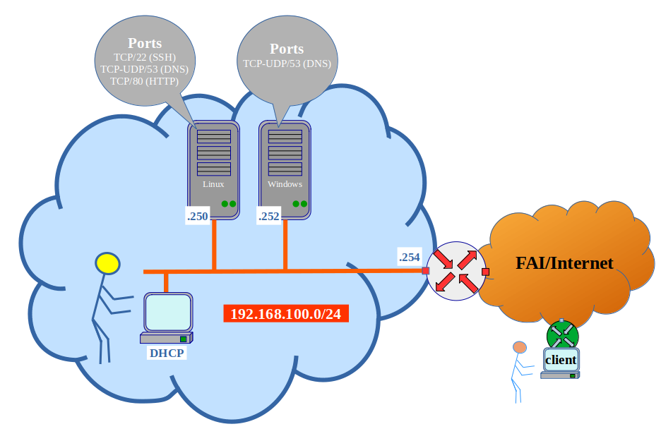 Dans ce cours, nous voyons quelles sont les solutions techniques à mettre en place pour que les postes clients puissent communiquer et acceder à Internet.